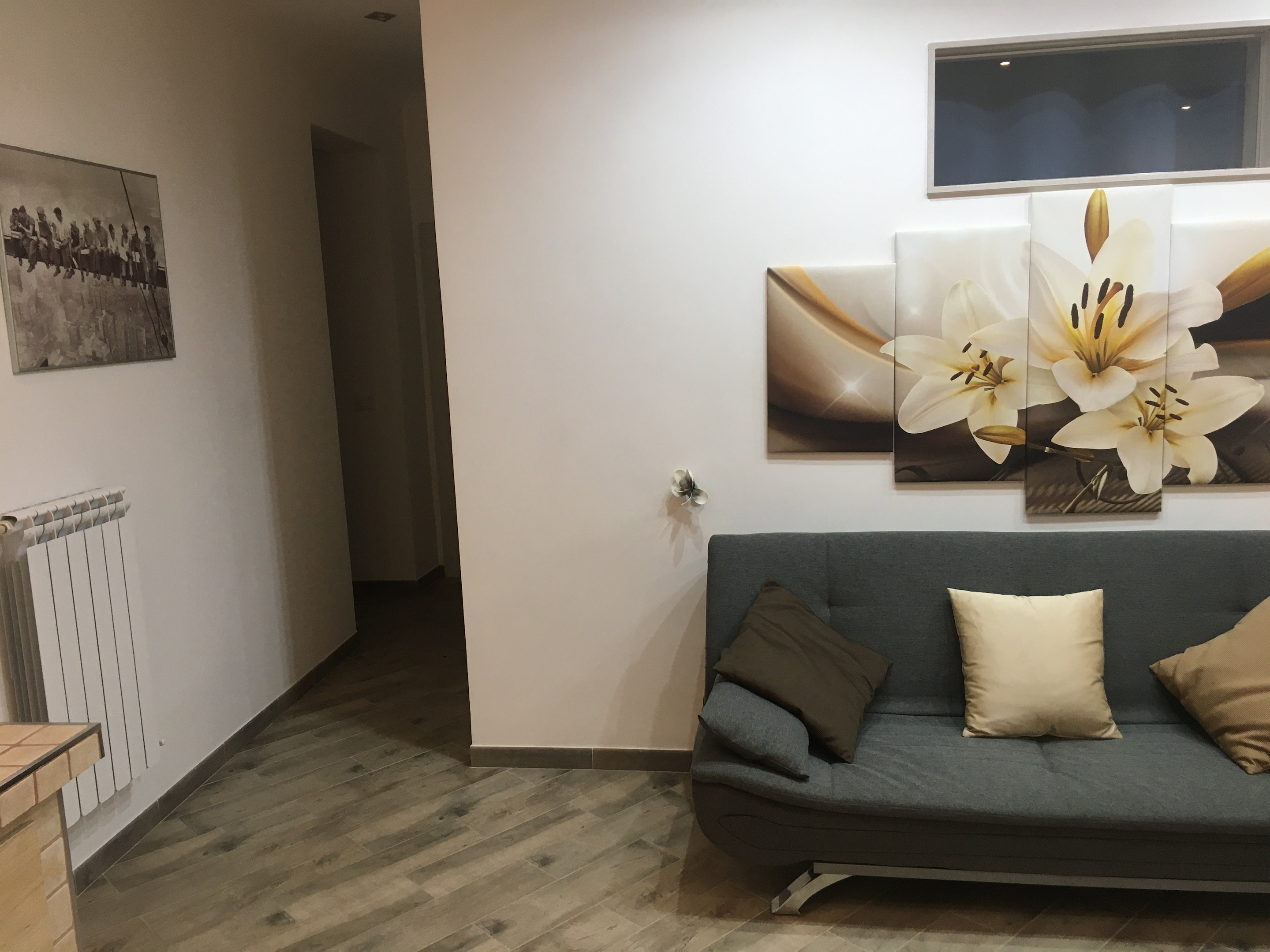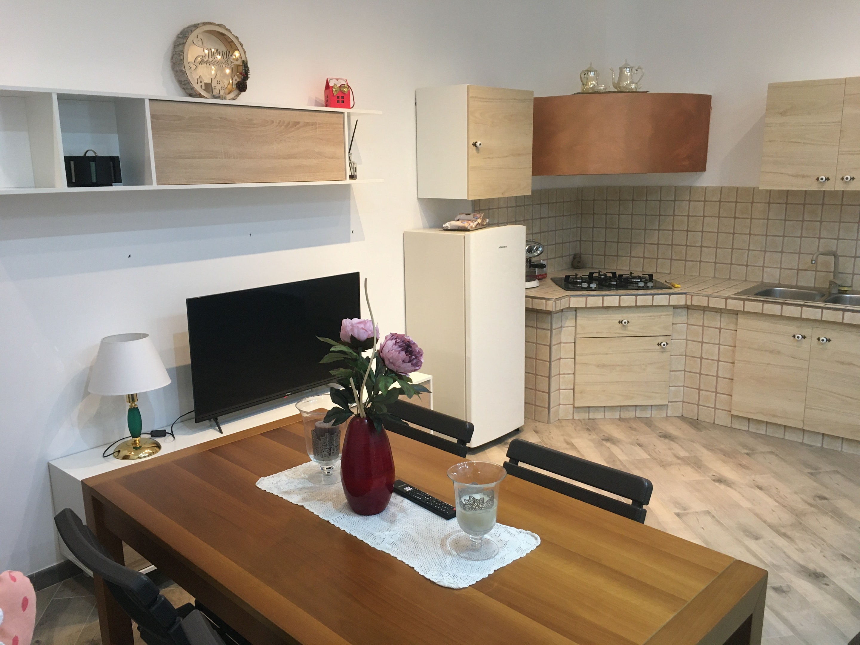 The common areas of the apartment are spacious and inviting. The bright living room features a comfy sofa and flat-screen TV, ideal for entertainment. The well-equipped kitchen provides all necessary appliances and has a dining area where you can enjoy meals with family and friends.